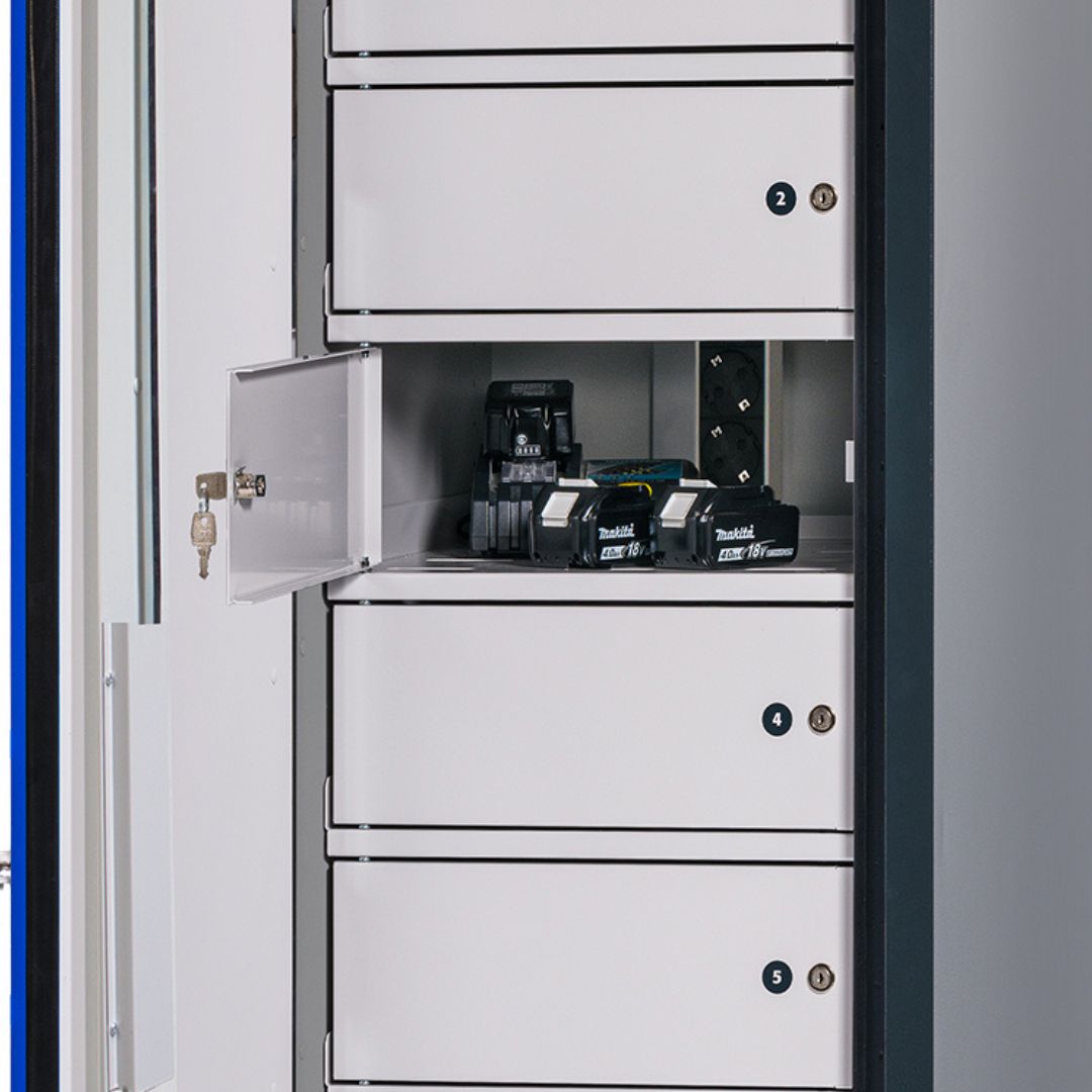 Mit unseren Schränken lädst du bis zu achtundvierzig Akkus gleichzeitig, komfortabel und platzsparend. Selbstschließende Türen, ein robuster Korpus und eine hochwertige Beschichtung sorgen für Langlebigkeit und einfache Bedienung. Das verschafft dir mehr Zeit für das, was wirklich zählt: ein perfektes Golf-Erlebnis für deine Mitglieder.